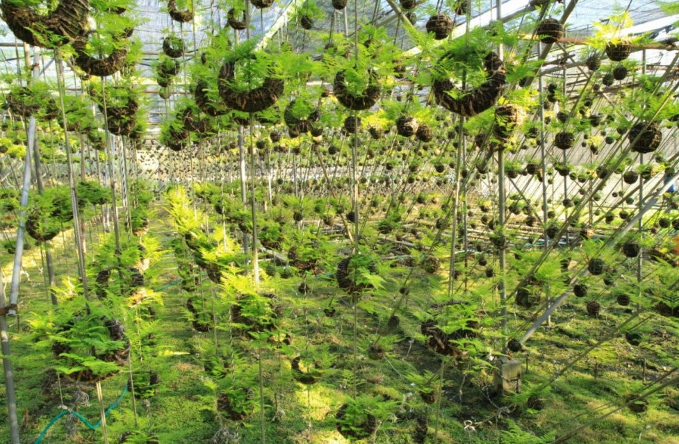 今日つりしのぶを専門に作っている農園は全国に二軒だけです。宝塚北部の豊かな自然に恵まれた当つりしのぶ園では、厳しい自然環境の中で何年もかけてしのぶ苗を育て上げ、しのぶ玉をひとつひとつ丁寧に手作りしています。オンラインショップにて一年を通してお求めいただくことができますので、ぜひご利用ください。