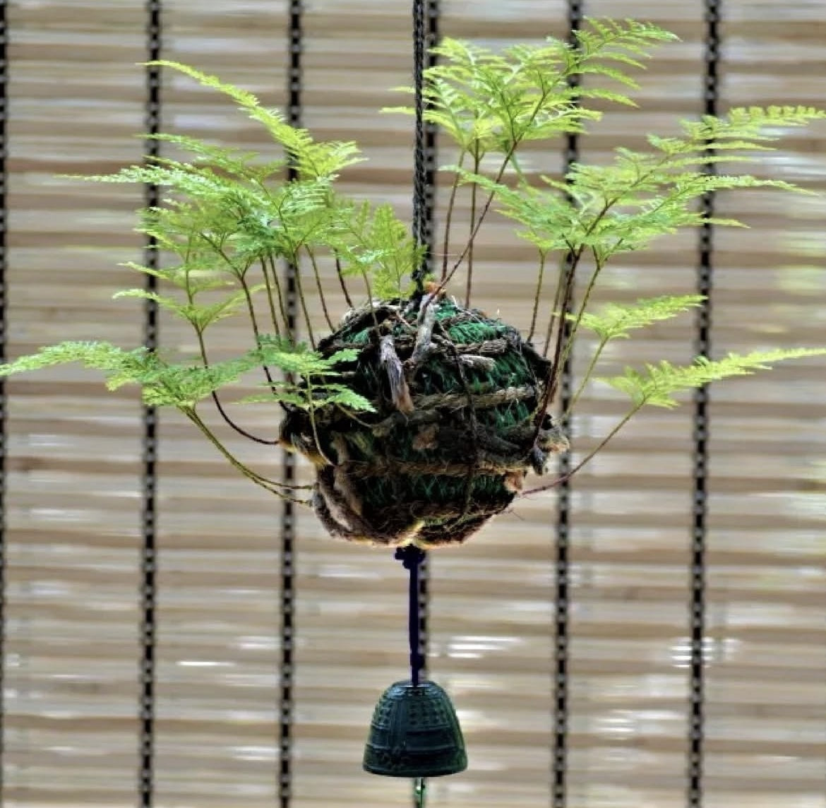 常緑つりしのぶ 約9cm玉 【南部鉄器風鈴付】